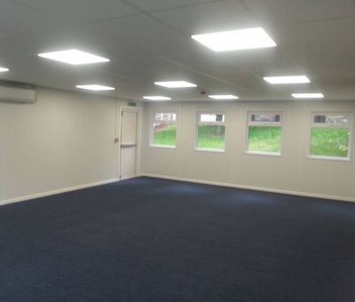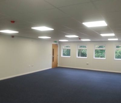 2 5 Bay Modular classrooms building 9.95m x 15m, which included an entrance Lobby, double classroom space and cloaks with storage. This project was a turnkey project which included the following services to the site including Electrics and foundations. The site was finished off with a fenced off safety area and DDA compliant ramps and steps